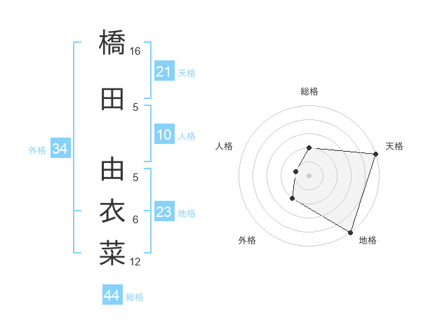橋田 由衣菜さんを姓名の画数から五運を鑑定