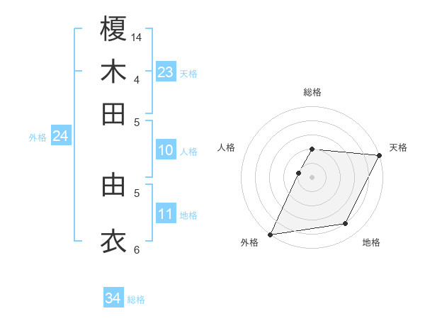 榎木田 由衣さんを姓名の画数から五運を鑑定