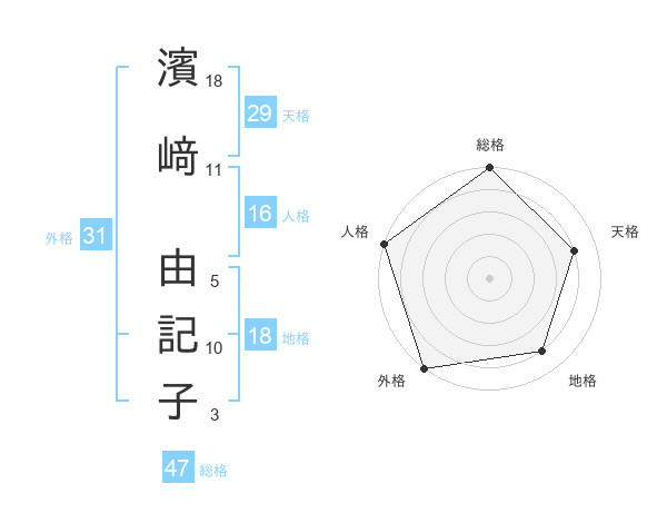 濱﨑 由記子さんの総格は47画の5点!