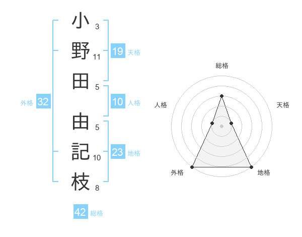 小野田 由記枝さんを姓名の画数から五運を鑑定
