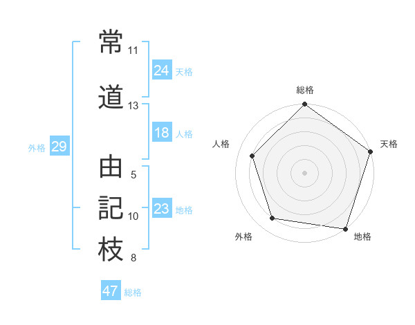 常道 由記枝さんの総格は47画の5点!
