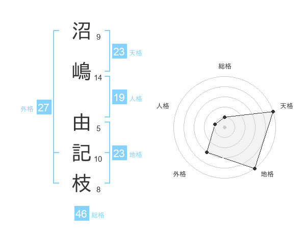 沼嶋 由記枝さんを姓名の画数から五運を鑑定