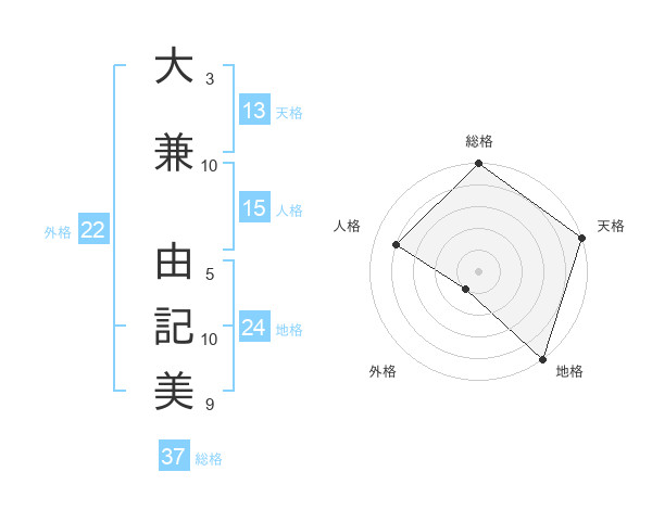 大兼 由記美さんの天格は13画の5点!
