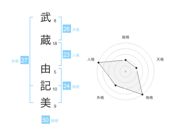 武蔵 由記美さんを姓名の画数から五運を鑑定