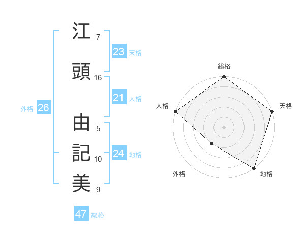 江頭 由記美さんを姓名の画数から五運を鑑定