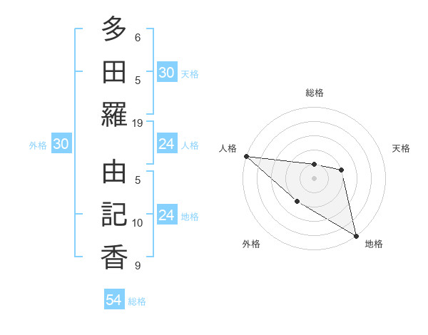 多田羅 由記香さんを姓名の画数から五運を鑑定