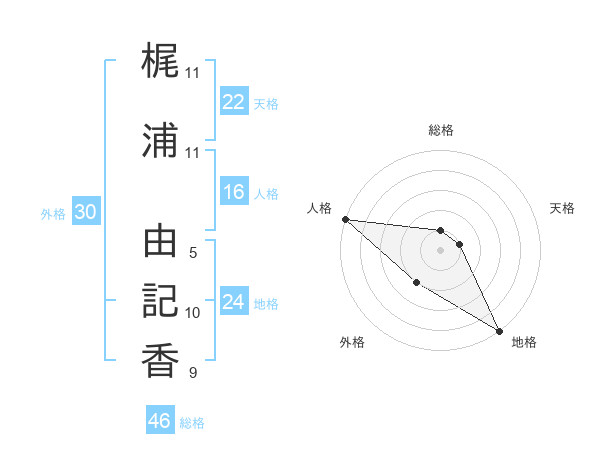 梶浦 由記香さんの天格は22画の1点!