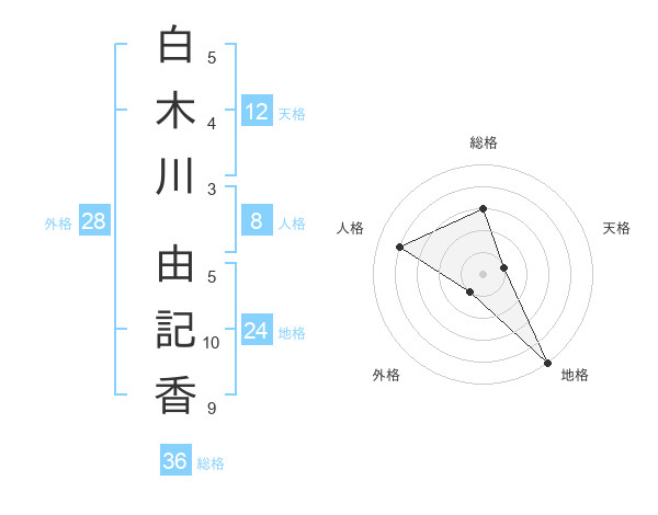 白木川 由記香さんを姓名の画数から五運を鑑定