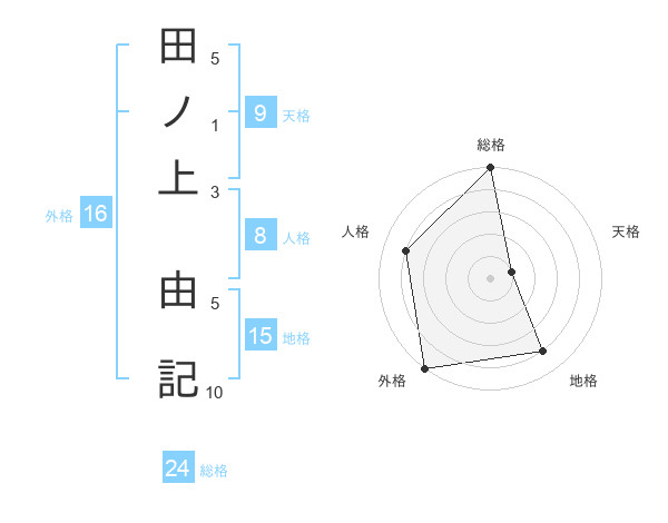 田ノ上 由記さんを姓名の画数から五運を鑑定