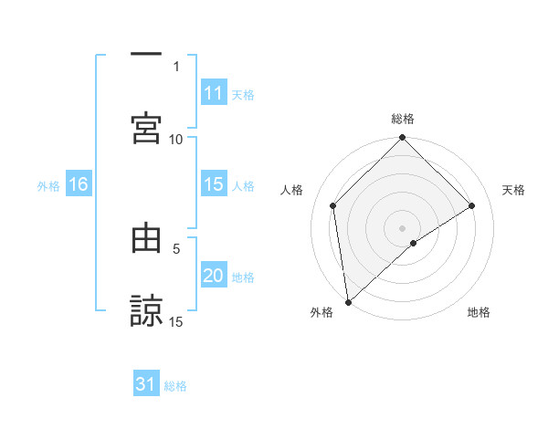 一宮 由諒さんを姓名の画数から五運を鑑定