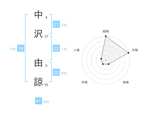 中沢 由諒さんを姓名の画数から五運を鑑定