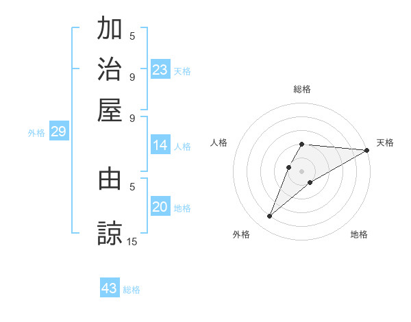 加治屋 由諒さんを姓名の画数から五運を鑑定