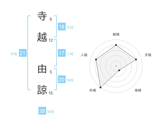 寺越 由諒さんを姓名の画数から五運を鑑定