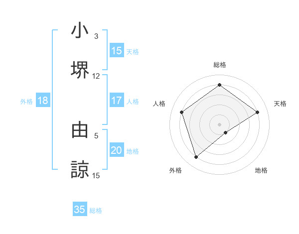 小堺 由諒さんの総格は35画の4点!