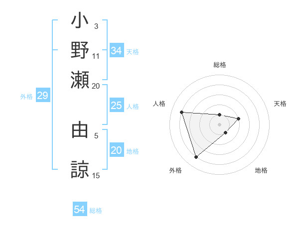 小野瀬 由諒さんを姓名の画数から五運を鑑定