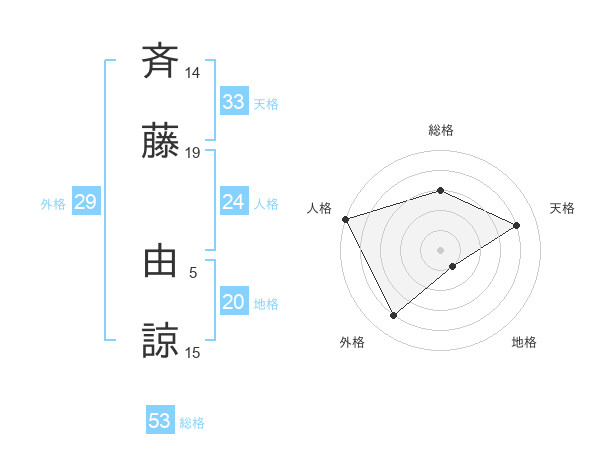斉藤 由諒さんの総格は53画の3点!