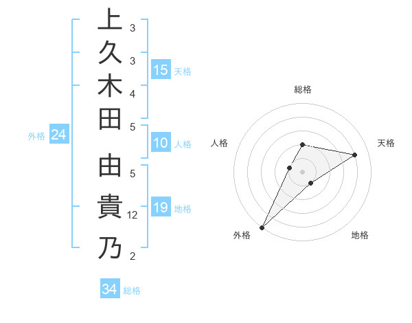 上久木田 由貴乃さんを姓名の画数から五運を鑑定