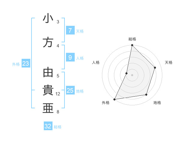 小方 由貴亜さんを姓名の画数から五運を鑑定