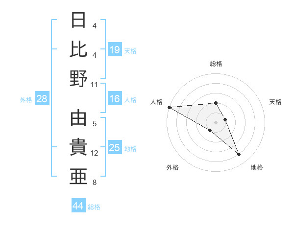 日比野 由貴亜さんの総格は44画の2点!
