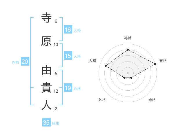寺原 由貴人さんの総格は35画の4点!