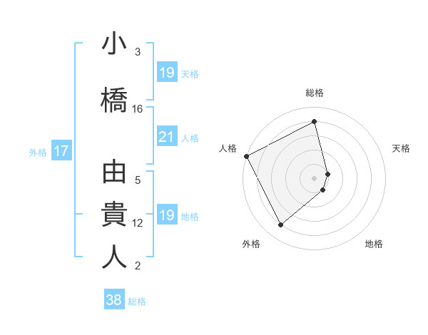 小橋 由貴人さんを姓名の画数から五運を鑑定