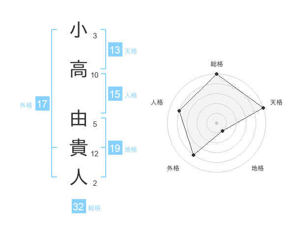 小高 由貴人さんを姓名の画数から五運を鑑定