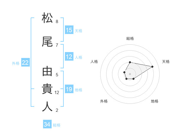 松尾 由貴人さんを姓名の画数から五運を鑑定
