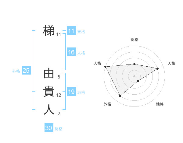 梯 由貴人さんの総格は30画の2点!
