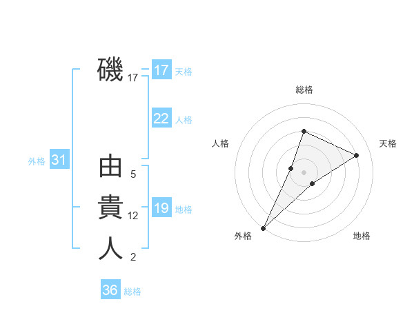 磯 由貴人さんを姓名の画数から五運を鑑定