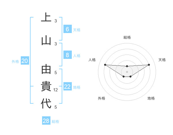 上山 由貴代さんの総格は28画の1点!
