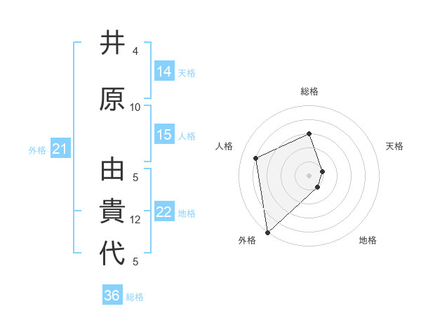 井原 由貴代さんの外格は21画の5点