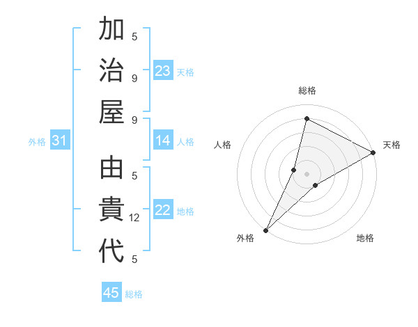 加治屋 由貴代さんの天格は23画の5点!