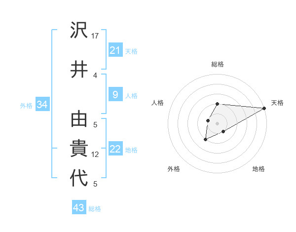 沢井 由貴代さんの天格は21画の5点!