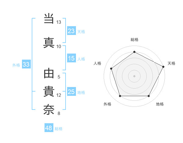 当真 由貴奈さんの天格は23画の5点!