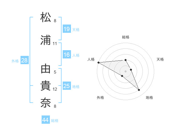 松浦 由貴奈さんを姓名の画数から五運を鑑定