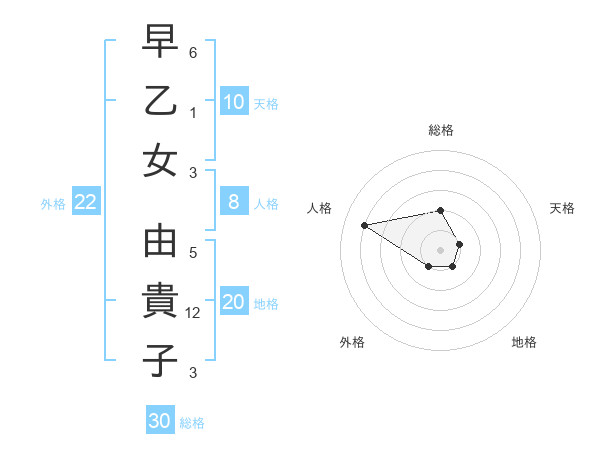 早乙女 由貴子さんを姓名の画数から五運を鑑定
