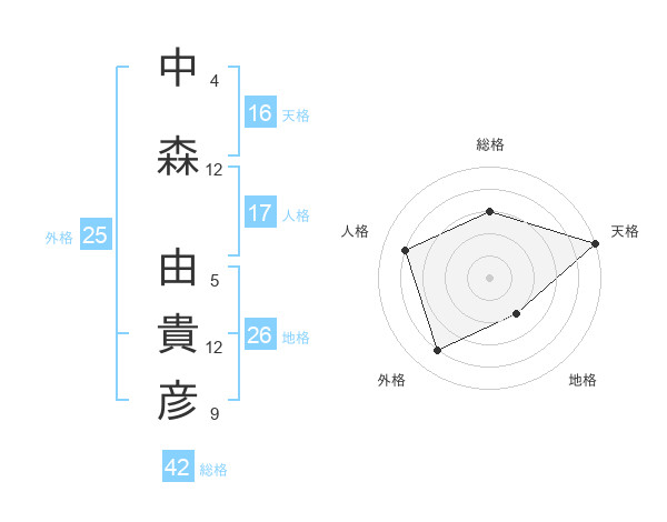 中森 由貴彦さんの総格は42画の3点