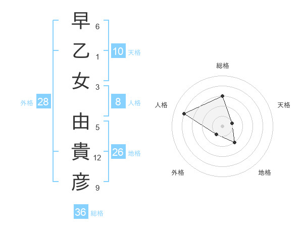 早乙女 由貴彦さんの総格は36画の3点!