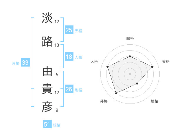 淡路 由貴彦さんを姓名の画数から五運を鑑定