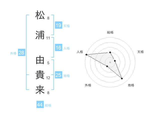 松浦 由貴来さんを姓名の画数から五運を鑑定