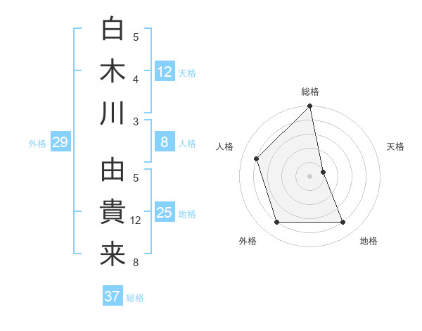 白木川 由貴来さんを姓名の画数から五運を鑑定