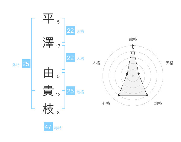 平澤 由貴枝さんを姓名の画数から五運を鑑定