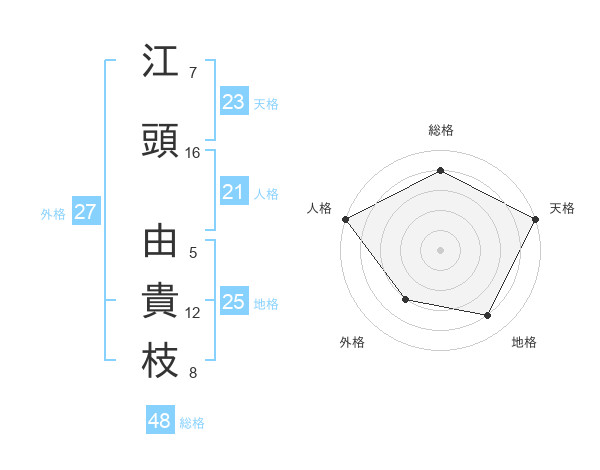 江頭 由貴枝さんを姓名の画数から五運を鑑定