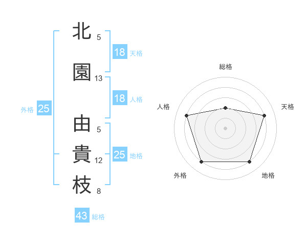 北園 由貴枝さんを姓名の画数から五運を鑑定