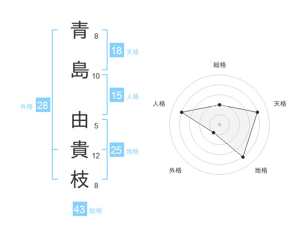 青島 由貴枝さんの総格は43画の2点!
