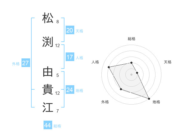 松渕 由貴江さんを姓名の画数から五運を鑑定