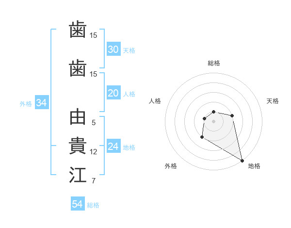歯歯 由貴江さんの総格は54画の1点!