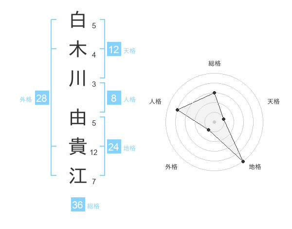白木川 由貴江さんを姓名の画数から五運を鑑定