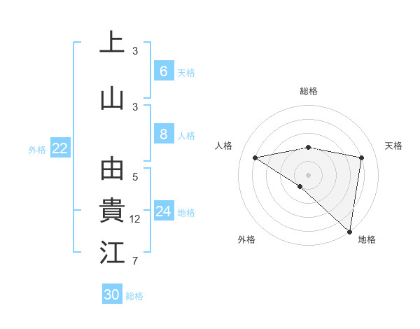 上山 由貴江さんの地格は24画の5点!