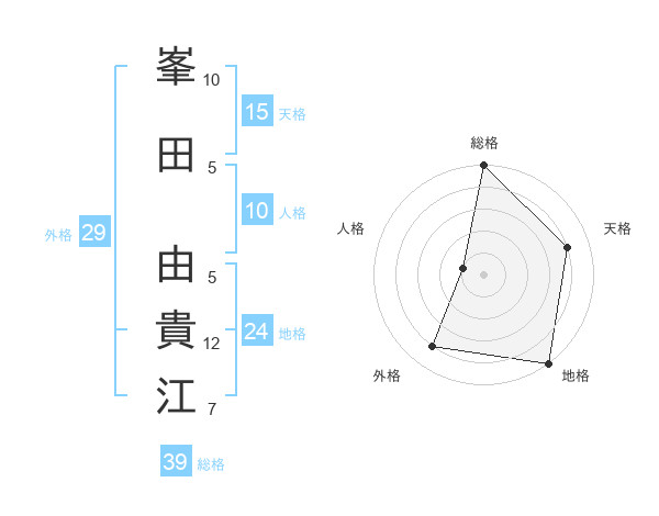 峯田 由貴江さんの総格は39画の5点